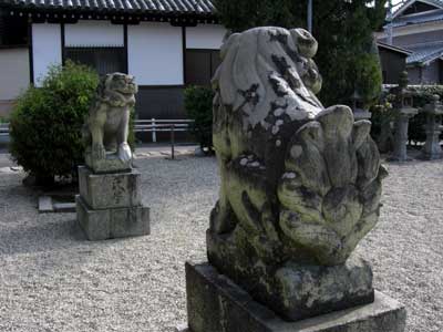 こちらにも少々古い狛犬さんがいます。