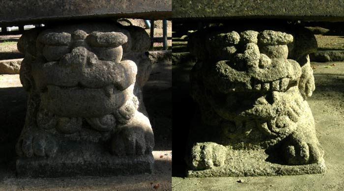 う~ん、九州には一筋縄では行かないような、ツワモノ(?)狛犬がいっぱいいるんですねぇ……