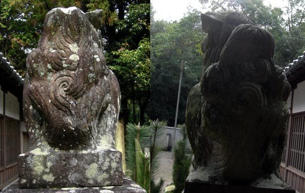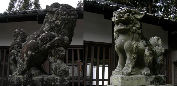 百四十年も座っているだけあって、どちらも結構苔むして、体の色合いも変わってしまっているせいなのか、印象が少し違うような気が致します。