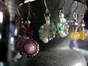 自分用に作ったピアスを慶州で買ってきた韓式土器(?)のレプリカの口縁部に引っ掛けて、写真を撮ってみました。