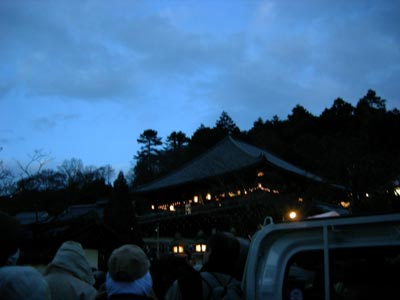 お堂に向う広場は既に人だかり、堂の下の火の粉のかかる様な場所には既に入場制限が出ていました。