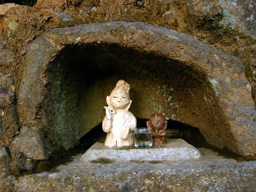 陶芸家の方の作品にも思えるのですが、このように水などをお供えしてあったので、やはり信仰の対象としておかれているのだと思います。