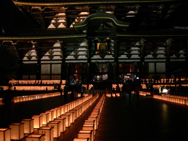 火が入る七時から十時までは開いてますし、何と言いましても回廊の中門が開いて、大仏さんの正面の窓が開くのもこの時と正月と、特別の法要の時くらいです。