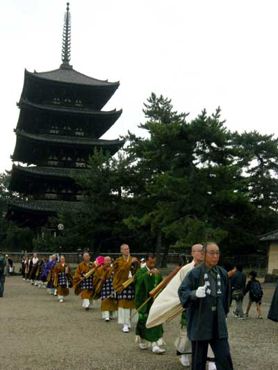 ところが興福寺の境内に入った途端、このような御僧侶が御堂に向かっているのに出会いました……もしかして、これから法要?