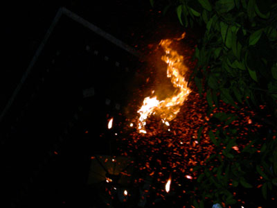 十本のお松明は約20分で上がりきります。