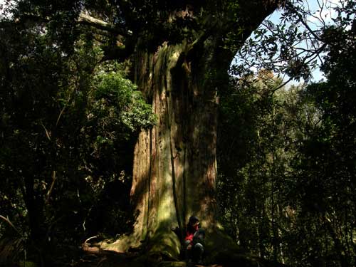 木全体の姿は到底、画面には収まらないのですが、樹冠は雷でも受けたのか痛々しく枯れかけています。