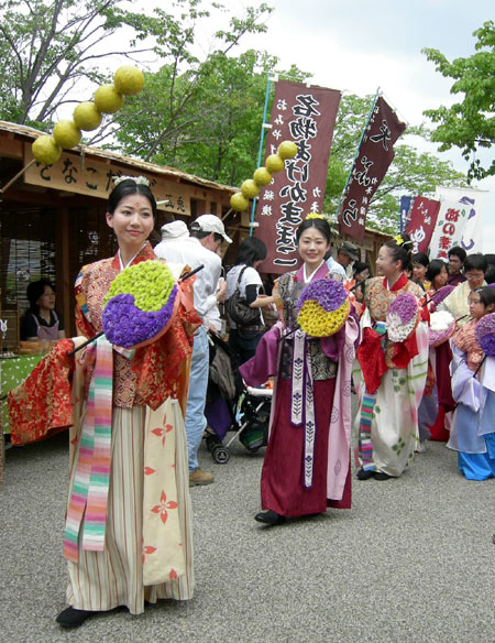 パフォーマンスとしては、昨日に天平衣装を着けた一般参加の方々の行列などもあったようですが、今日はミス奈良による、プチ行列で花を添えていました。