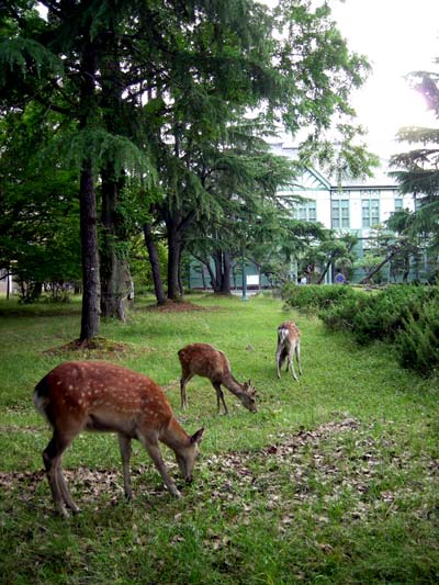 帰る時に正門に向かっていたところ、鹿が勝手に校内で食事中でした。