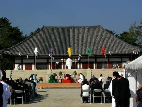 どうやら金堂の基壇復元工事が終わったようで、この日(昨日七日ですね)が地鎮祭のようです。