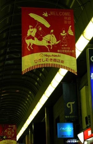 これから大阪に向かうという友人と別れまして、再び駅周辺の商店街に行きますと、アーケードには既に『春日若宮おん祭』のペナントが下がっていました。
