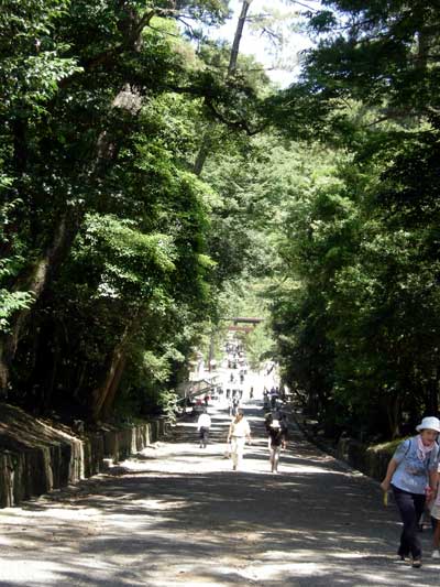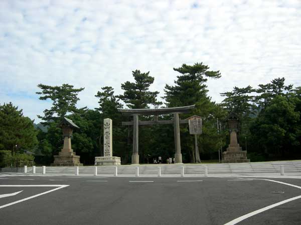出雲大社のHPでのお知らせによりますと、拝観の整理券を配るのは九時からとの事でしたので、チョイと早いのですが、まぁ広い境内でしょうから、時間をつぶすのはいくらでもできるでしょうと、他の人と同じ様に北へと緩く登ってゆく道をとりました。