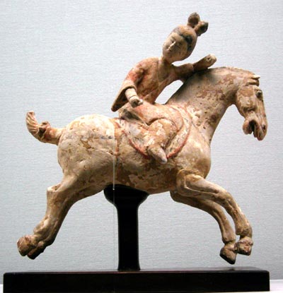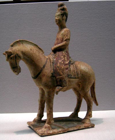 女性用の横座りの鞍が日本でもあったらしいのですが、俑でも見た記憶があります。