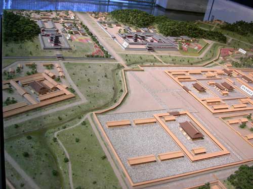 割合に最近の発掘成果に基づいた、飛鳥の宮地を中心としたジオラマで、まだ調査の及んでいない所は大胆な仮説に基づいて復元したとか云々。