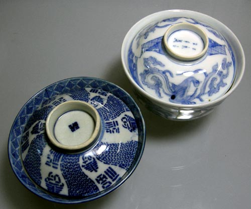 ちなみにひがし向きアーケード内の少し高級そうな陶磁器店で、このような蓋付き茶碗の現代物を見たところ、安くても三倍以上の値段がついていました。