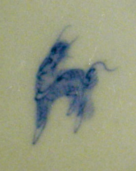 蓋や身の外側にはハゲタカ(鳳凰だって(ーー;))が、見込みのワンポイントをアップにして見ますと、このようにアフガンハウンド(麒麟!(ーー;)!)までいたりします。