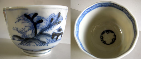 明治時代の型紙摺りの染付ですので、大して珍しい物でもないのですが、こいつがかなり安かったんです。