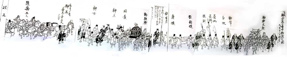 一応画像をクリックして頂ければ、少しは分かるのではないかと思いますが、明日の正午には御神輿やら御稚児さんも参加して、お渡り式が行われるようです。