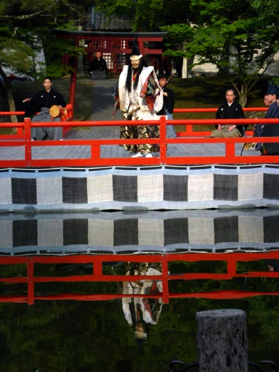 当然ながら後見口などもなし、お陰で舞台上でシテやワキの方が演じている最中、正面から後見の方々が主役以上に目立ちながら入ってくるのが、すごく目に付いてチョッと可笑しいです。