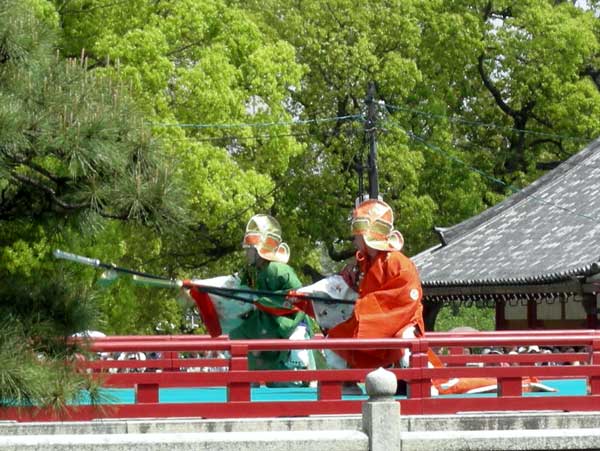 『舞楽協会』の会員には椅子席が用意されているのですが、池の傍の木や柱に遮られて、結構見難い場所なので、割り合いに座っている人は少ないようです。