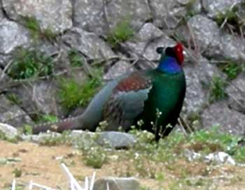 この辺りで見かける雉は、まず在来種、首に白い輪のある外来種は見た事がありません。