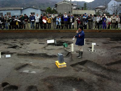 この纏向遺跡で初めて、企画性を持った建物群が発見されたという報道はつい一昨日の事で、現地説明会は本日行われました。