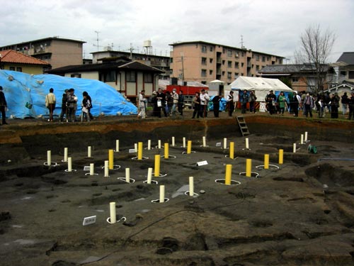 都城とまで行かずとも古墳時代には、方位をそろえた掘立柱建物など珍しくはないのですが、ここでは弥生時代が終わるか古墳時代が始まるかという時期、出土した土器から三世紀の前半、ここまで古い例は畿内でも初めて確認されたのだそうです。