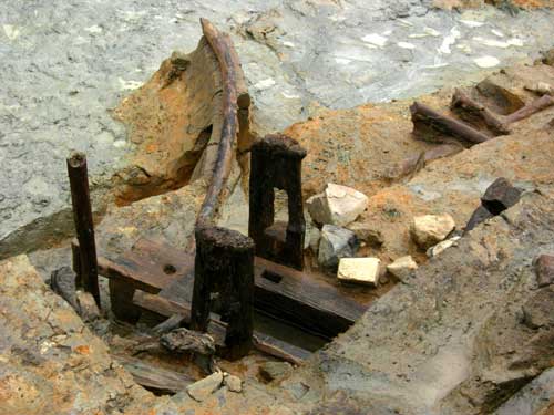 今回の範囲では、堤も完掘していないので、木樋も先端が顔を出しているだけです。