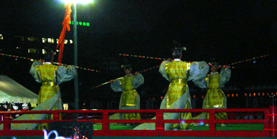 演目は『振鉾三節(えんぶさんせつ)』『賀殿(かてん)』『狛桙(こまほこ)』『抜頭(ばとう)』の四曲です。