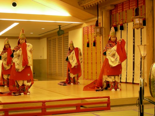 こちらの楽所でも、最近は女性の活躍が著しいそうで、管弦や童舞に限らず、平舞(ひらまい)などでも女性が勤めているのを時々拝見します。