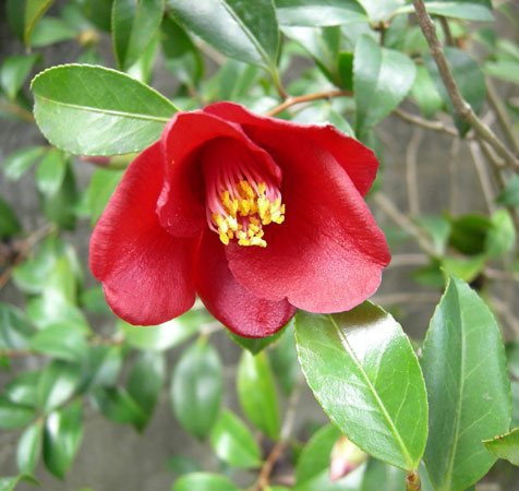 日本古来の自生種は一重の赤い『やぶ椿』ですから、これはどう見ても園芸種ですわ(^^ゞ