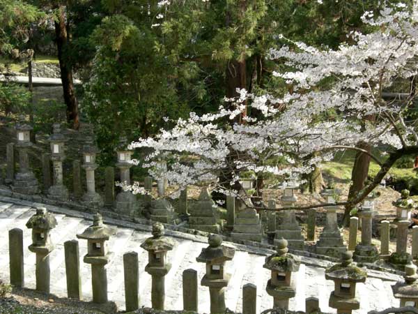 この石段の石灯籠と桜も、既に何枚もあります。