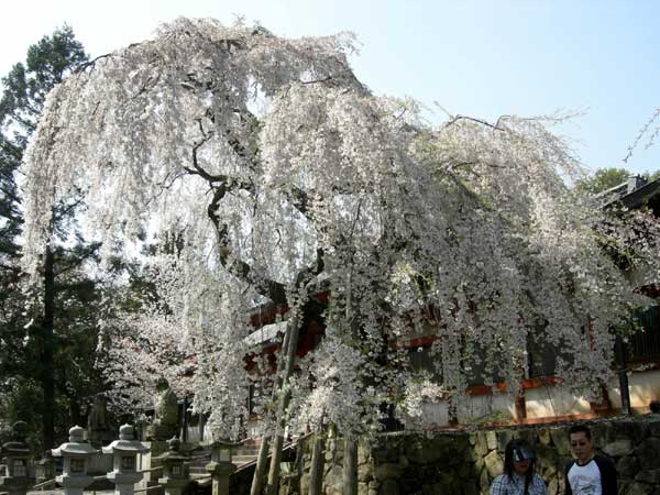 奈良で一番早く開花するので有名な枝垂桜は、盛りを少し過ぎた様子で、しきりに花びらを散らせていました。