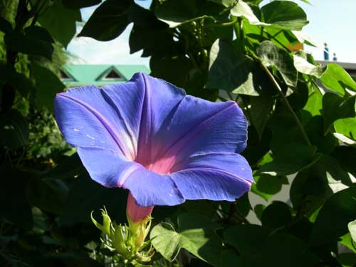 職場の近所でも、歩道に蔓を伸ばして踏みつけられても、全然弱る様子もなく大きな花を毎朝つけています。