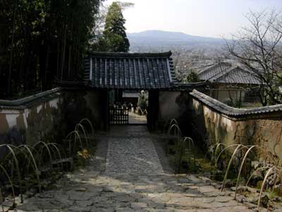 私がここへ行くのは大抵が秋、つまりは『志貴親王御忌』の頃なので、この画像の石段には萩の花がたわわに咲いています。
