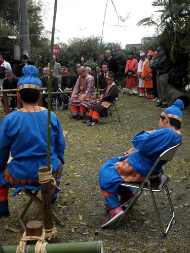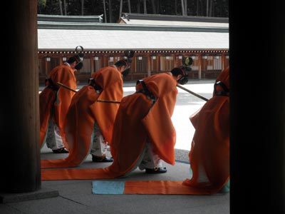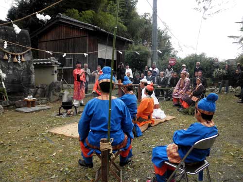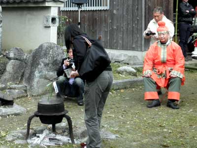 堂内の奥の方での儀式のため、一般の人の拝観場所からはまず見えないので、殆どの人は『蘇利古』の舞に集中しているところでしょう。