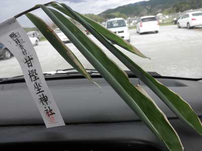 こうして御芝居も終わりまして、氏子の方々が参列者に笹の枝を配ってくれました。