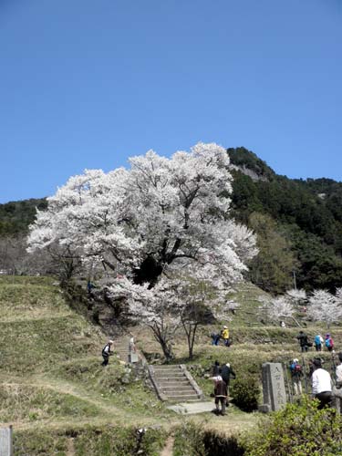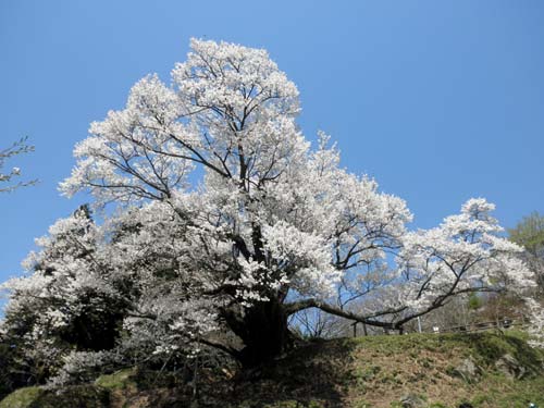 この辺りは標高が高いせいか、千年桜を尋ねる途中でも、白山桜や枝垂桜、八重桜が見頃で、染井吉野もまだまだ咲き残っていました。
