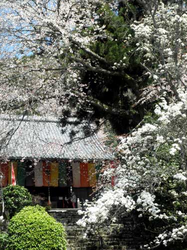 ともあれ千年桜以外にも、境内では白山桜や紅枝垂桜、山梨の花も満開で、華やいだ様子を呈しています。
