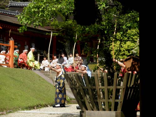 こちらのでの蟇目は的ではなく、若宮社の細殿(ほそどの)の屋根越しに射るという変わったスタイルで行われます。