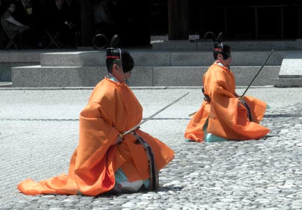 いずれにしても現在、宮内庁や橿原神宮で行われる『久米舞』は江戸時代に復興したものだそうで、古記録に見える舞や歌は、室町時代に廃絶してしまったという事です。