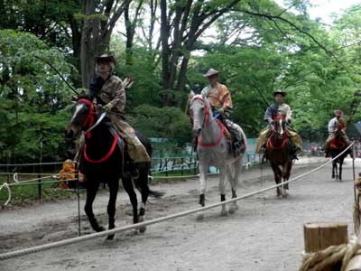 今年も有料席でも取れたら取ろうと、11時半くらいに購入者列の最後に並び、待つ事一時間余、何とかゲットして、二の的と三の的の間くらいの中途半端な位置で眺めておりました。