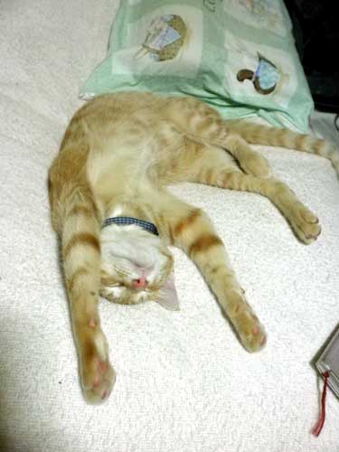 それにしてもこいつは、いつも変な格好で寝ております。