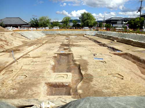 炉の北側の柱列(東西方向)は、二条大路の南側溝から2メートル程度しか離れていないので、建物になる可能性は大きそうです。