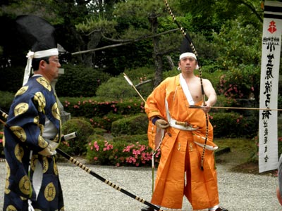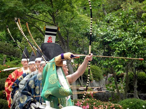 前後の二組に分かれて的中を競い合うのだそうですが、的がとても小さくて、中てるのがかなり難しいのだそうです。