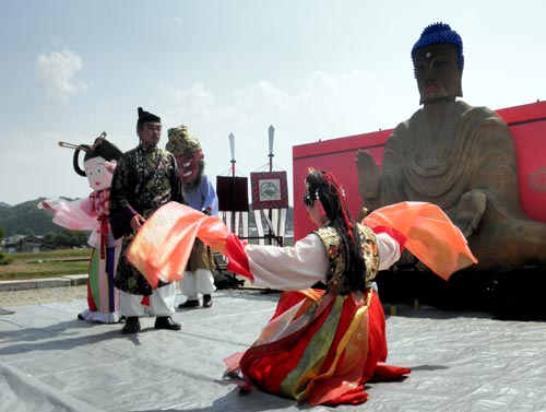 ここに上げた画像は、手創りのコンセプトならば何所にも負けません、明日香村の誇る劇団『時空』による『大化の改新』という劇のもようです。