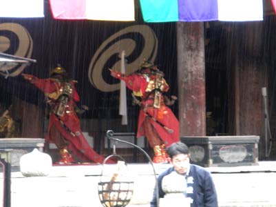 これが石舞台の上で行われていたならば、舞人の鎧に着けられた鈴がシャラシャラと音を立てるのも聞こえます。