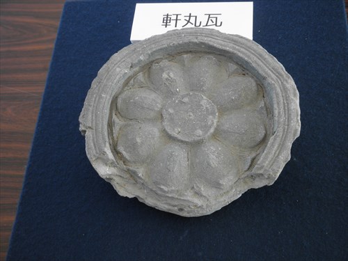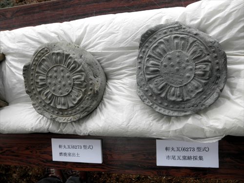 更に重要な遺物としては、藤原宮大極殿に葺かれた軒丸瓦です。奈文献の分類で6273型式と呼ばれる軒丸瓦だそうで、燃焼室から一点だけ見つかりました。この瓦のおかげでこの窯は、大極殿の瓦を焼くために造られた事が証明されたという貴重な成果です。