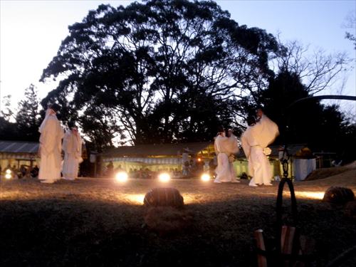 競馬の勝敗は赤(左方)の勝ちとなったので、先行は『蘭陵王』、続いて『納曽利(なそり)』『散手(さんじゅ)』『貴徳(きとく)』『抜頭(ばとう)』『落蹲(らくそん)』となりますが、私は貴徳の終わったところで退散しました……この頃、また風が出てきて、寒いなんてもんじゃない"(-""-)"