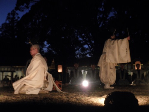 細男(せいのお)は、他では見る事のできない不思議な舞です。装束も舞も楽も、極めてシンプルです。