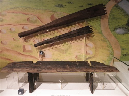 この画像は、橿原市内の遺跡から出土した古墳時代の琴です。箏は十三絃ですが、上古の琴は五絃が多いようです。